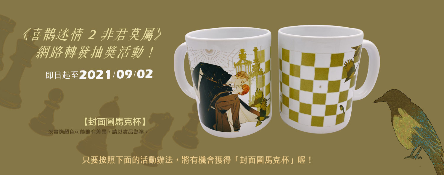 獎品:「《喜鵲迷情 2 非君莫屬》封面圖馬克杯」共二名。