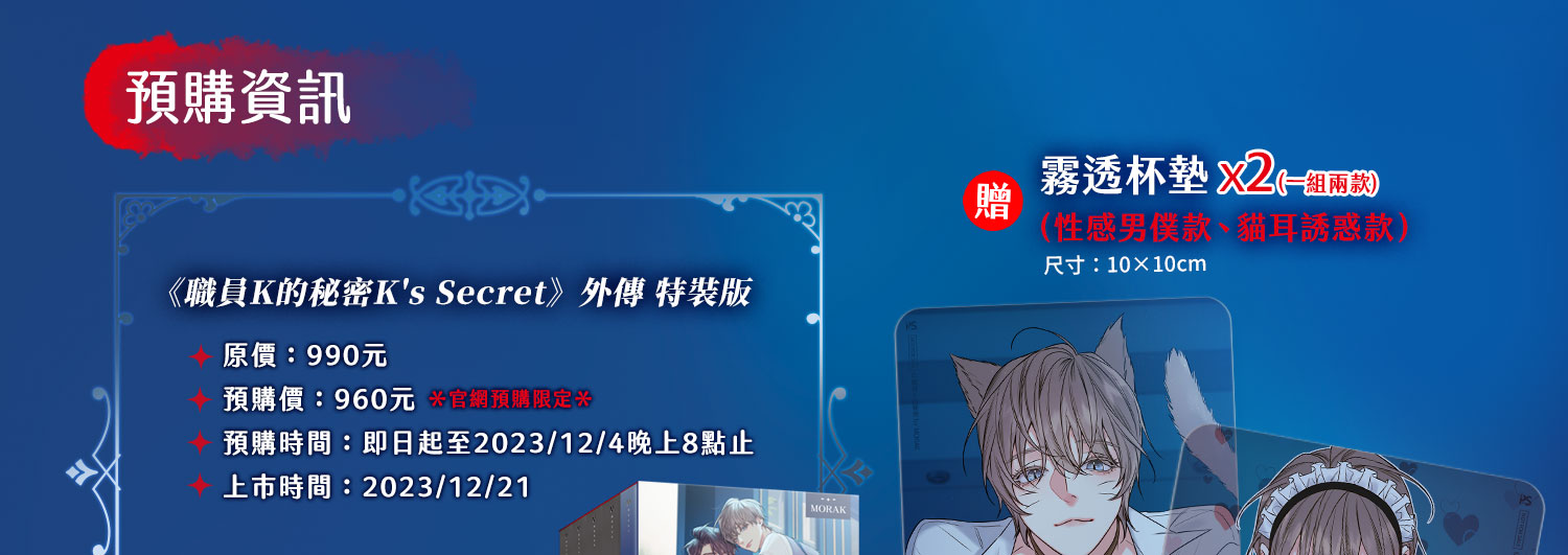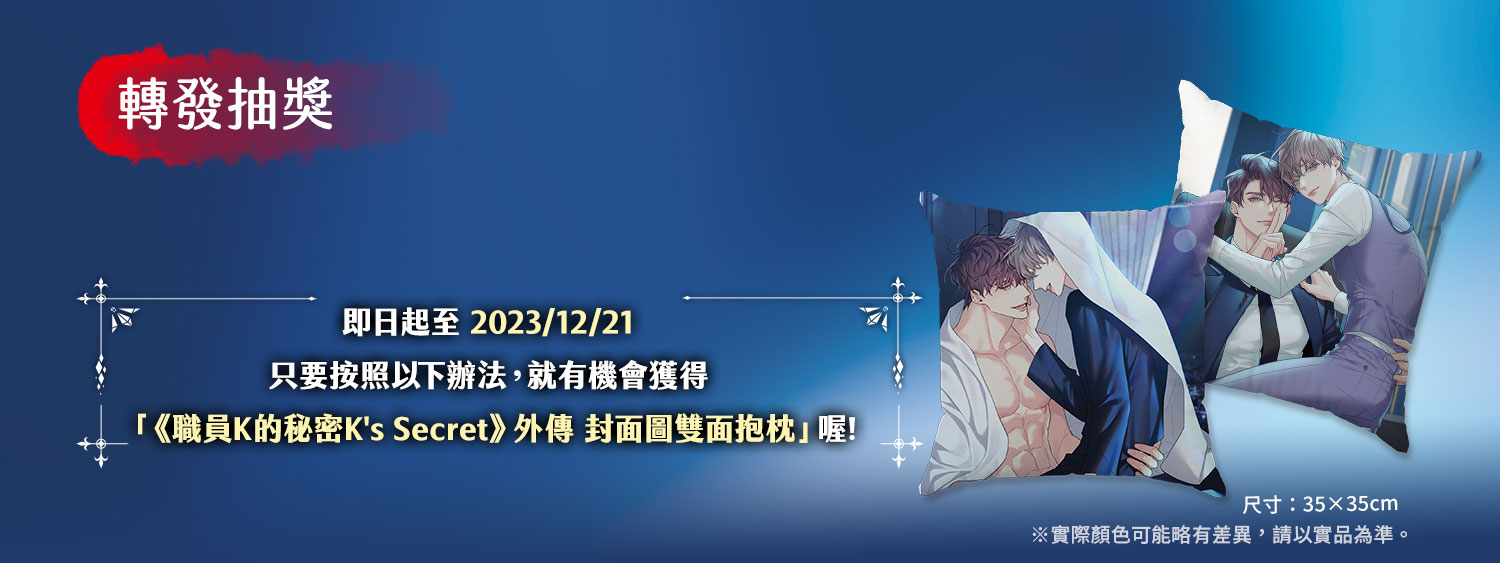 獎品:「《職員K的秘密K's Secret》外傳 封面圖雙面抱枕」共二名。