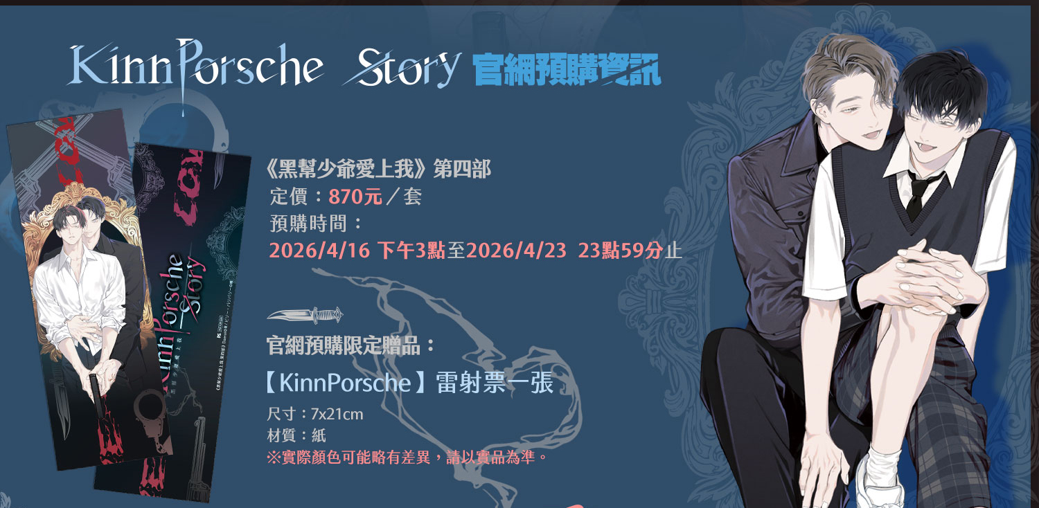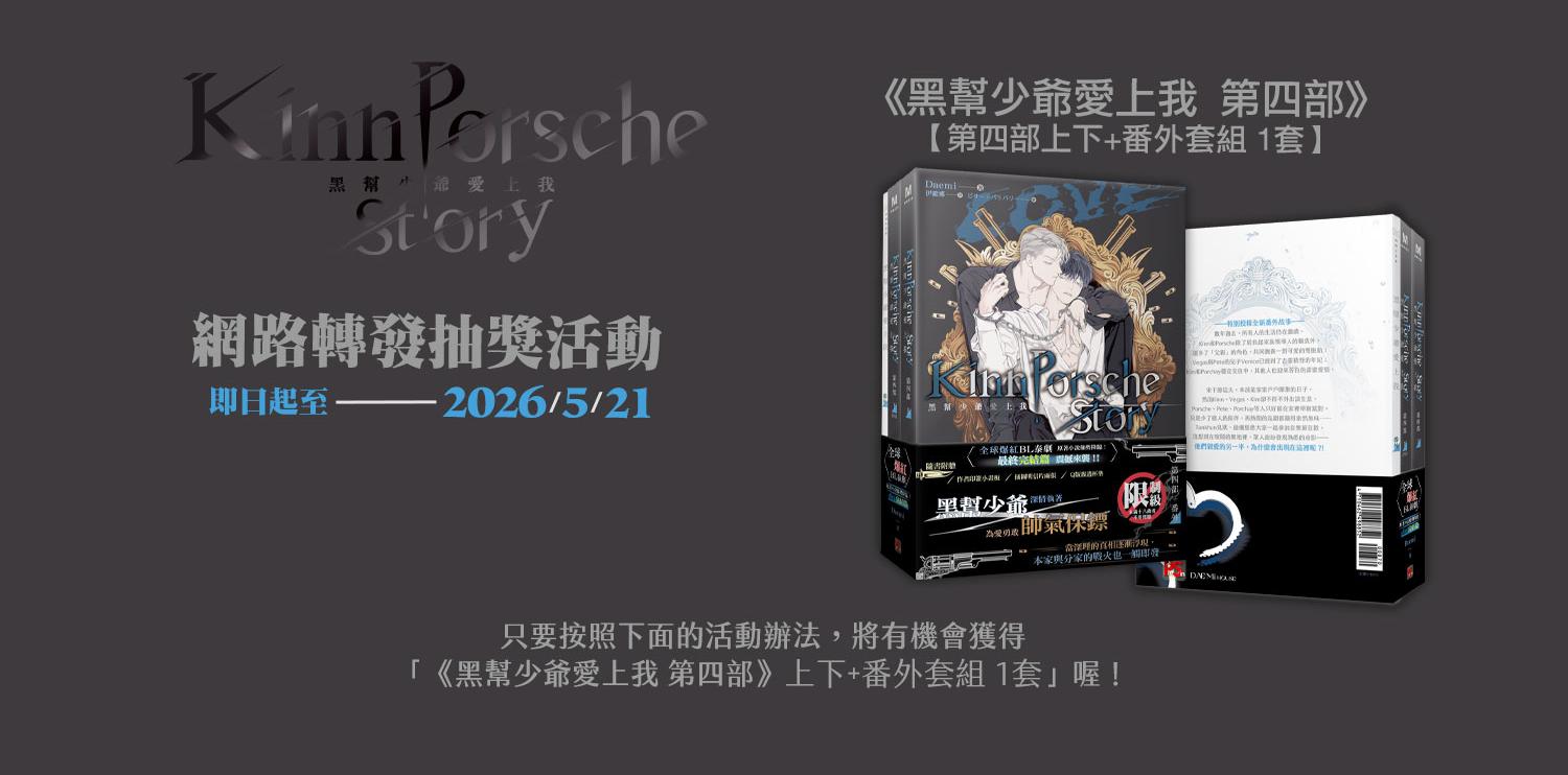 獎品:「《黑幫少爺愛上我 第四部》上下+番外套組」共三名。