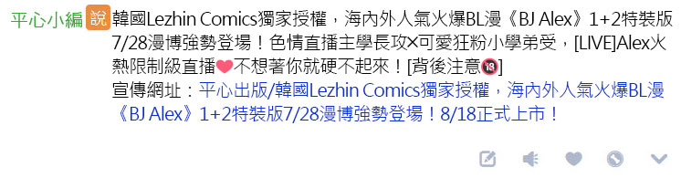 步驟二:公開分享平心出版facebook《BJ Alex》貼文, 且 @Tag_____兩位好友,即可參加抽獎!