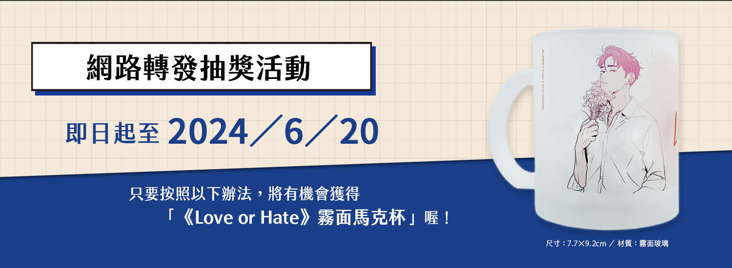 獎品:「《Love or Hate》霧面馬克杯」共二名。